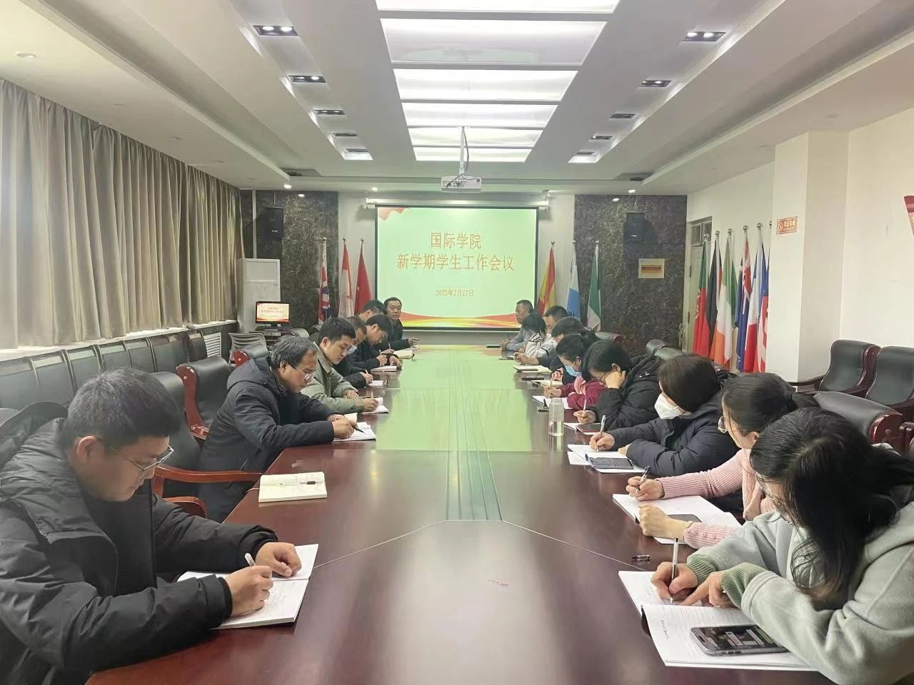 为推动新学期各项员工工作有序开展。2月17日下午,太阳成集团tyc33455cc召开新学期员工工作会议,太阳成集团tyc33455cc分党委书记刘景涛、副书记郭建伟、行政办主任罗红磊和全体辅导员参加会议。会议由罗红磊主持。