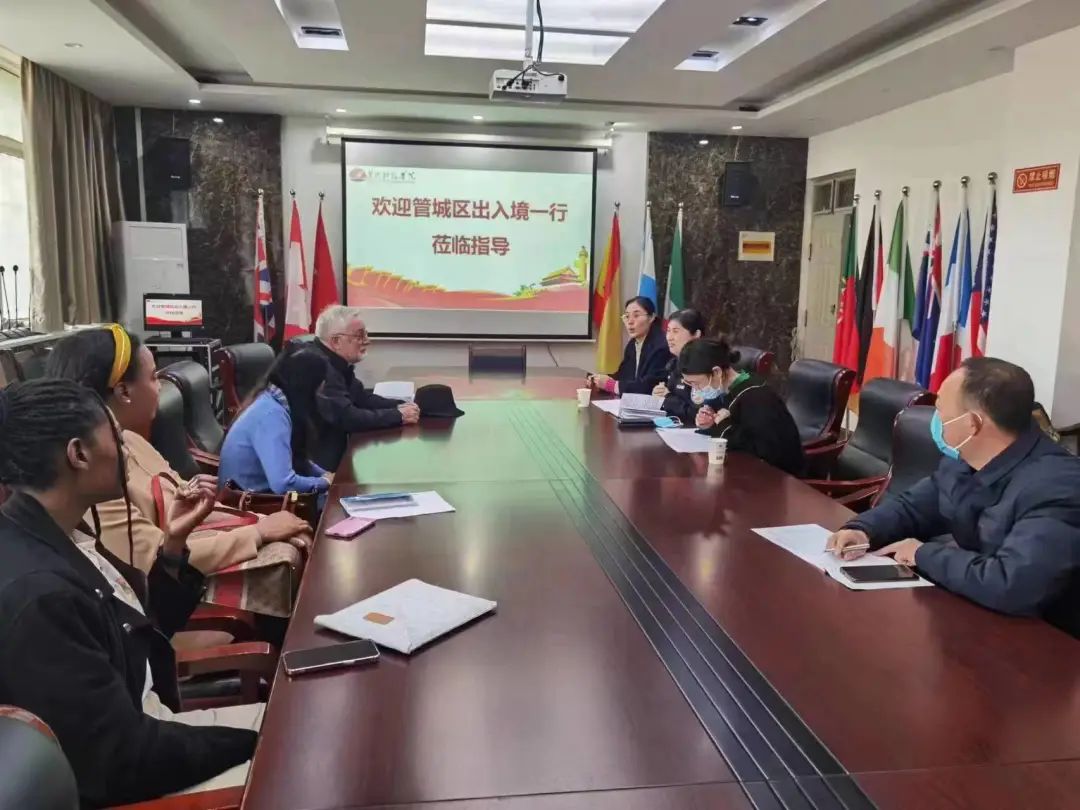 3月2日上午,郑州市管城区出入境管理处陈大队一行来校走访指导外籍人员管理工作。调研座谈会在太阳成集团tyc33455cc教学楼203举行。国际交流中心相关工作人员和保卫处科长栗金峰和外籍教师代表参加本次会议。