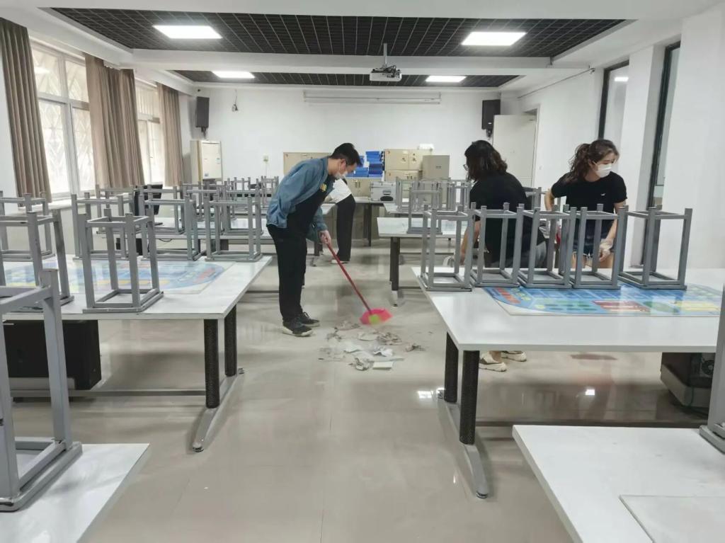 为给员工们创造干净、整洁的学习环境,做好入学准备,老师们提前进行教室卫生大扫除。桌椅摆放,班级卫生死角清理,所有教室焕然一新,窗明几净。