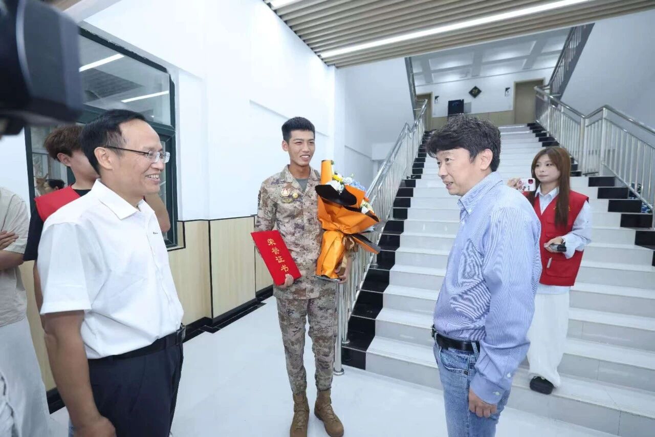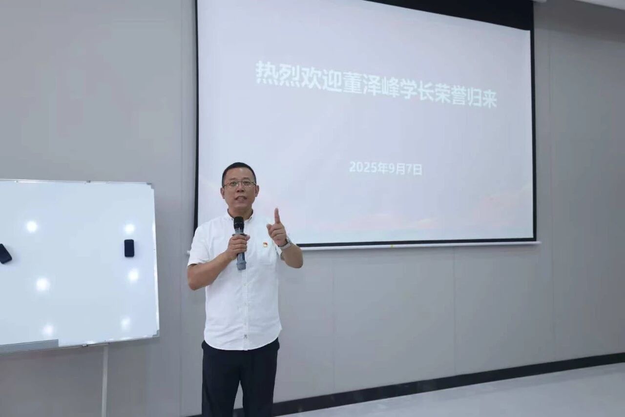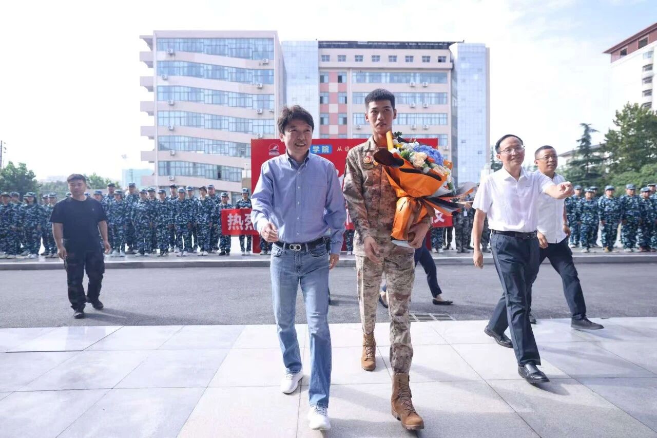 7日上午,董泽峰归校。正在此间军训的2025级新生热烈欢迎董泽峰凯旋。