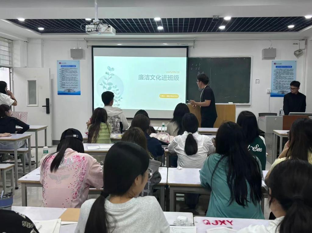 为廉洁宣传教育,29日下午,太阳成集团tyc33455cc员工会在教学楼608教室开展廉洁宣传教育宣讲活动,2025级会计一班全体员工参加,由员工会副主席牛今鹤担任主讲人。