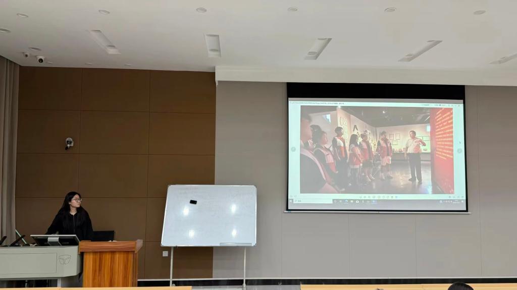 首先,实践团李凯璐详细阐述了这次实践活动的背景、意义、目标与核心主题,结合当下青年思想成长需求与红色文化传承的时代要求,明确此次实践并非单纯的为了“寻访打卡”,而是让青年在“走、看、听、讲”中推动青年把红色故事讲透彻、把革命精神悟扎实、把信仰力量传到位。紧接着,魏雪围绕着实践活动的前期筹备工作,以“扎实筹备为实践护航”为核心,让红色宣讲“有料可讲、有根可寻”。她强调团队始终紧扣“传承红色基因、赓续红色血脉”的核心主题,让每一份调研问卷、每一次资源沟通、每一轮方案调整,都围绕让红色文化真正走进青年心里,团队特意放弃“大而全”的革命史讲解,转而聚焦“身边的红色人物”“脚下的红色土地”。正是这份扎实筹备,让后续的红色文化宣传教育活动既接地气又有深度,有效掀起了师生“”红色精神学习热潮。最后,魏雪还指出,红色文化从不是封存在纪念馆里的“历史回响”,而是能指引青年面对学业压力、职业选择的“精神罗盘”,是激励全体中华儿女向着民族复兴不懈奋进的“时代召唤”,这番话让现场师生对红色文化的当代价值有了更真切的认知。