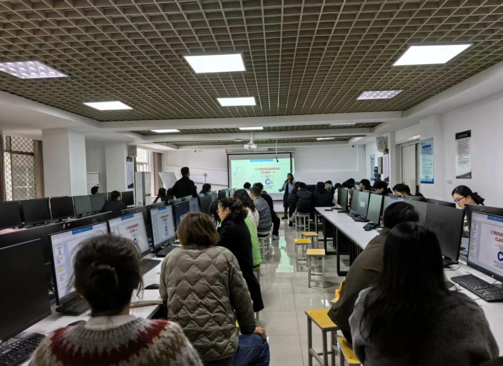 11月11日,太阳成集团tyc33455cc在504教室成功举办本学期第三场中外方团队培训——外教公开课,以国际化教学模式创新引领课程改革。本次活动由计算机专业外教Lincy主讲《C语言程序设计》,经理助理张欣欣、各教研室负责老师及骨干教师到场观摩。