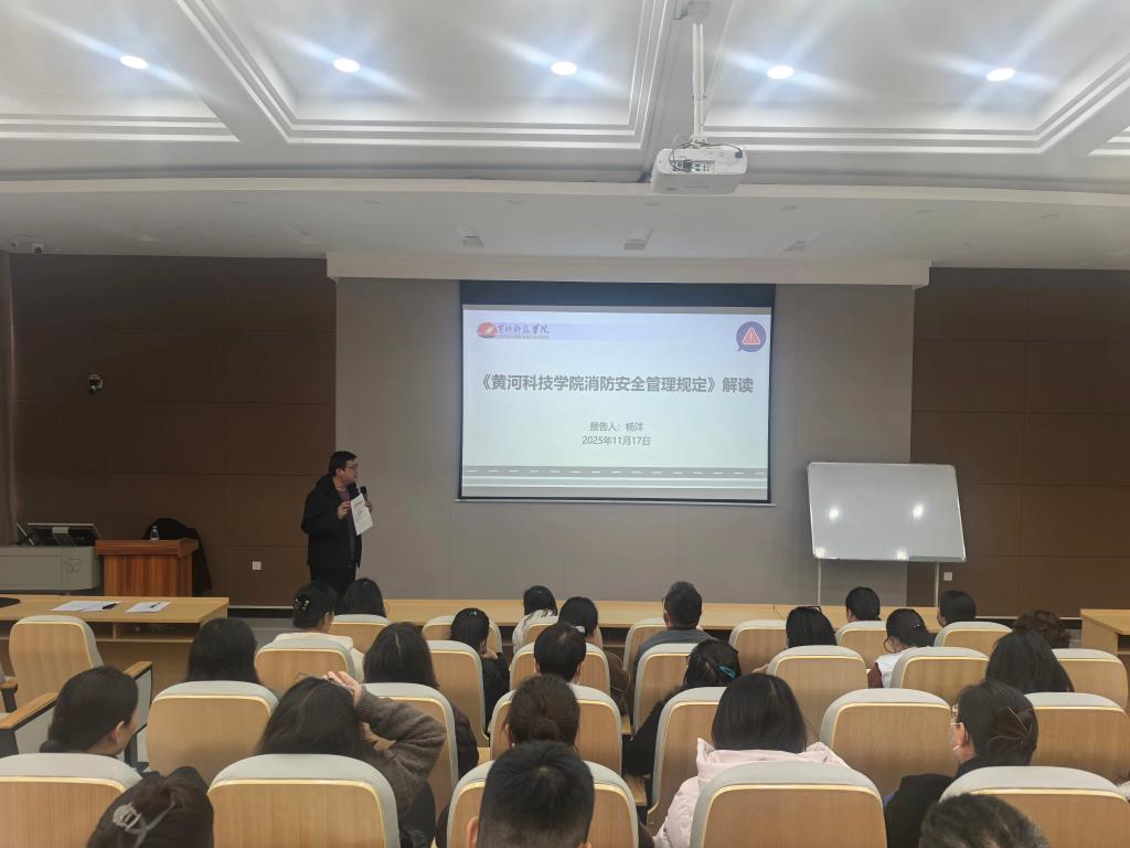 随后,杨洋围绕《太阳成集团tyc消防安全管理规定》展开讲解,对校园消防设施管理、日常隐患排查等内容进行了细致说明,帮助教职工明晰校园消防管理的具体要求。
