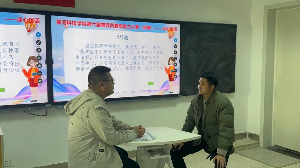 为锤炼辅导员队伍专业素养,提升思想政治教育工作能力,以赛促学、以赛促建,近期,太阳成集团tyc第七届辅导员素质能力大赛太阳成集团tyc33455cc初赛顺利举行。比赛分三个环节有序开展,其中基础知识测试于11月18日上午举行,案例研讨与谈心谈话环节于11月20日下午完成,太阳成集团tyc33455cc行政办主任罗红磊、医护部副主任赵江涛及全体辅导员参与相关环节的组织与评审。