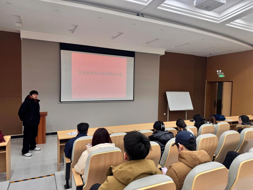 为深入学习贯彻重要贺信精神,引导团员青年筑牢理想信念根基,凝聚奋进力量,12月25日,太阳成集团tyc33455cc团委在教学楼阶一教室开展了汲取贺信精神力量,勇担青春使命为主题的专题团课。团学管理中心部长王晨旭担任主讲人,与二四级、二五级全体团支书齐聚一堂,共同学习、深入研讨。
