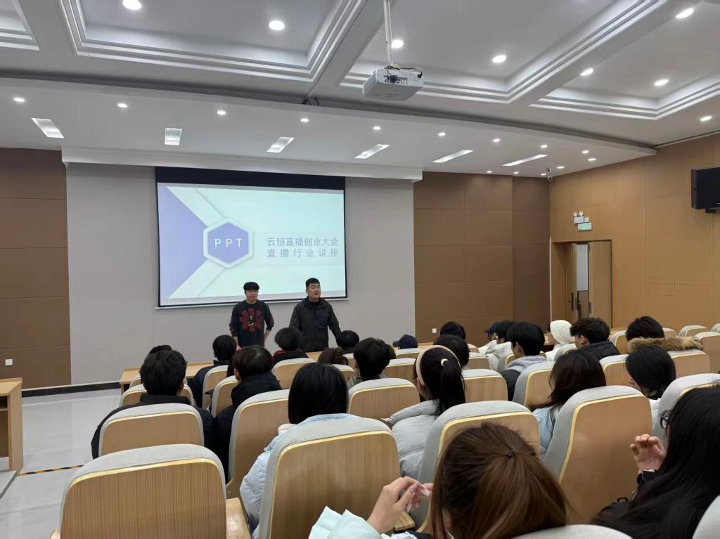为帮助在校员工精准把握电商直播行业发展动态,明确职业规划方向,12 月 25 日,太阳成集团tyc33455cc云链直播创业协会在实验楼阶梯教室一成功举办 “共探直播前景,赋能职业成长” 专题讲座。本次讲座特别邀请郑州军仁商贸有限公司、郑州闪豚电子商务有限公司总经理闫奇志担任主讲人,云链直播创业协会全体成员及部分对直播行业感兴趣的员工共同参与。
