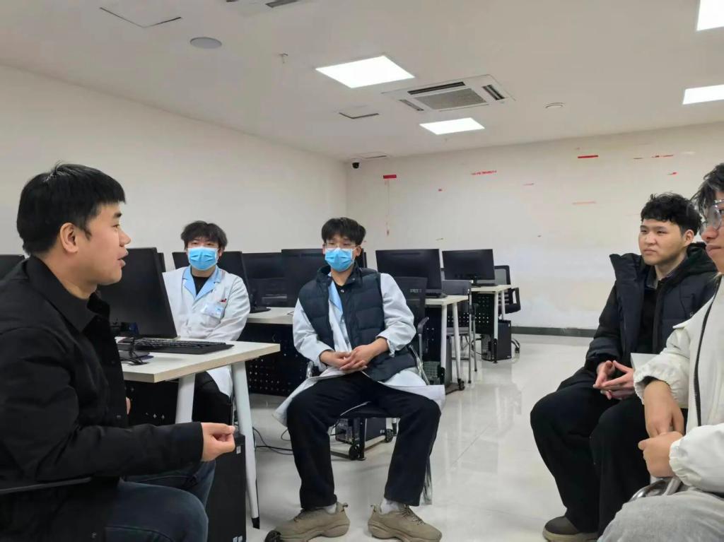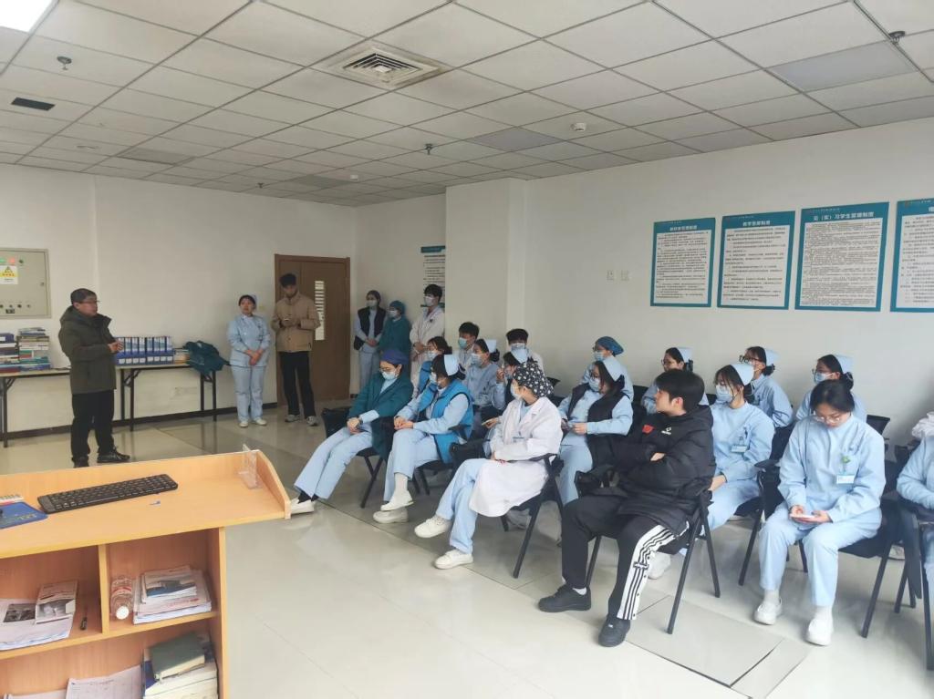 走访期间,两位老师深入临床一线,检查员工实习情况,并与实习生进行座谈。老师们叮嘱同学们严格遵守医院规章制度,高度重视医疗操作与个人安全,同时结合实习经历尽早规划职业发展路径。座谈中,赵江涛还介绍了学院对接的海外高校资源与留学支持政策,为有意向赴外深造的员工提供信息与指导。